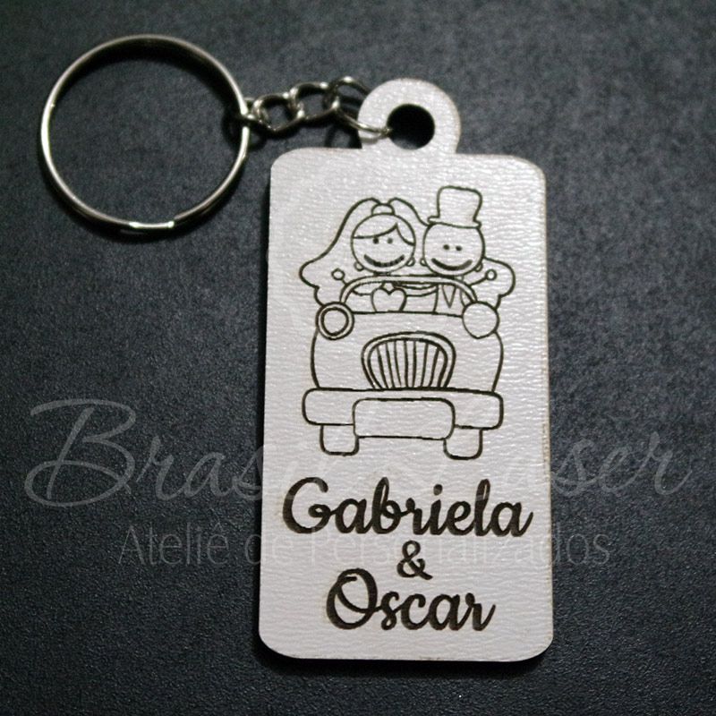 1 Chaveiro Personalizado para Lembrança de Casamento com Gravação a laser (Minimo 20 unidades por pedido) - Selecionar Material/cor dentro do anuncio