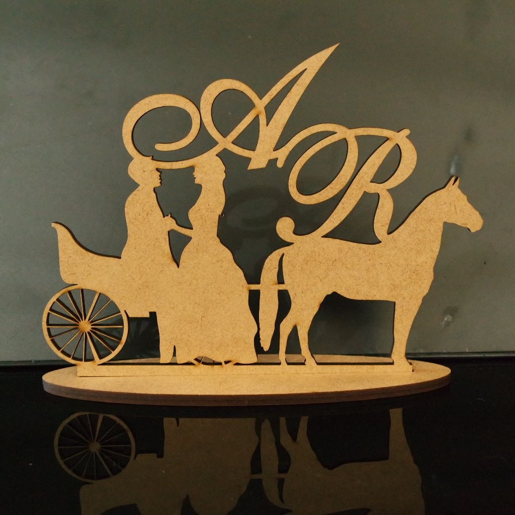 Topo De Bolo Casal na charrete e cavalo - 14cm (maior lado da peça) - Cor à Escolher