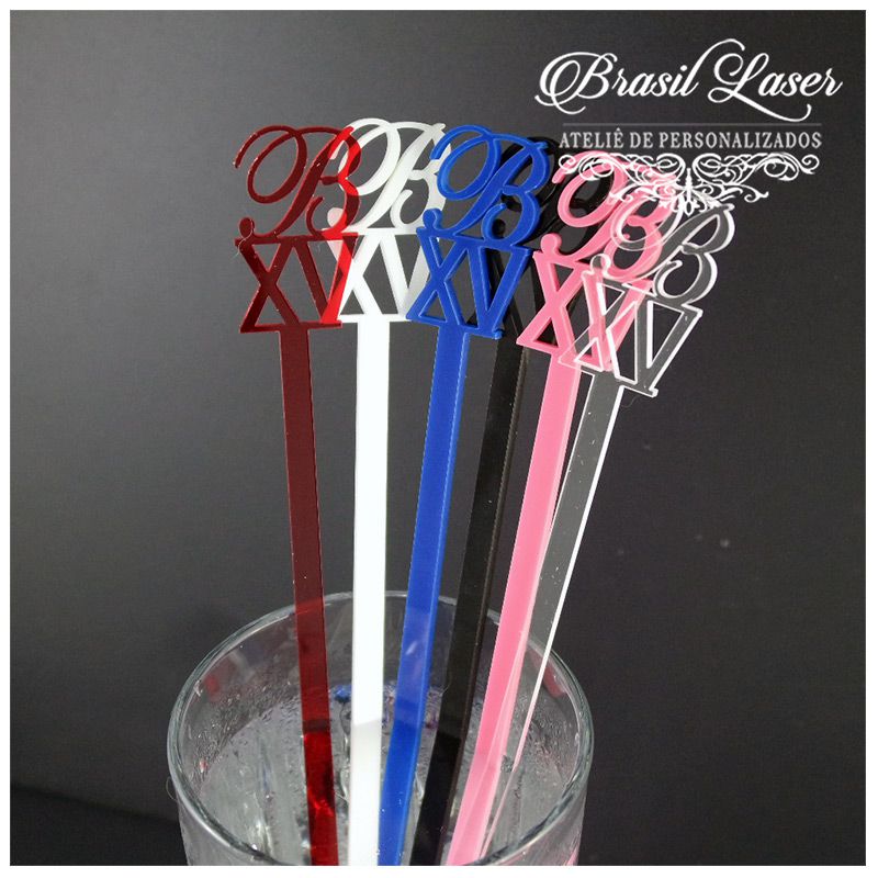 1 Mexedor (Misturador) para Bebidas Personalizado em Acrílico - #Quantidade Mínima: 20 unidades iguais#