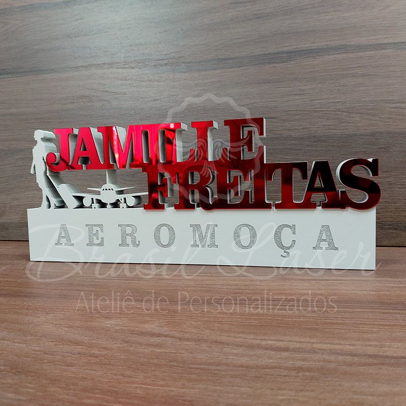 Decoração 3D Profissão para Aeromoça / Comissária de Bordo com Nome Personalizado