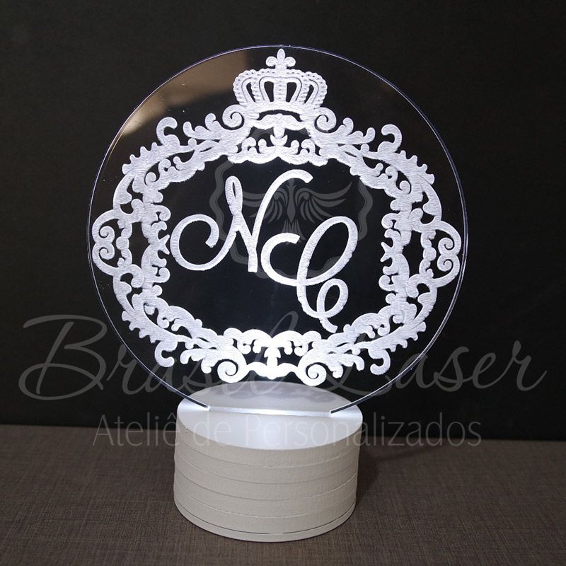 Topo de Led Premium com Acrílico Grosso Iluminado com Brasão à escolher Personalizado - Veja opções de Tamanho no Anúncio